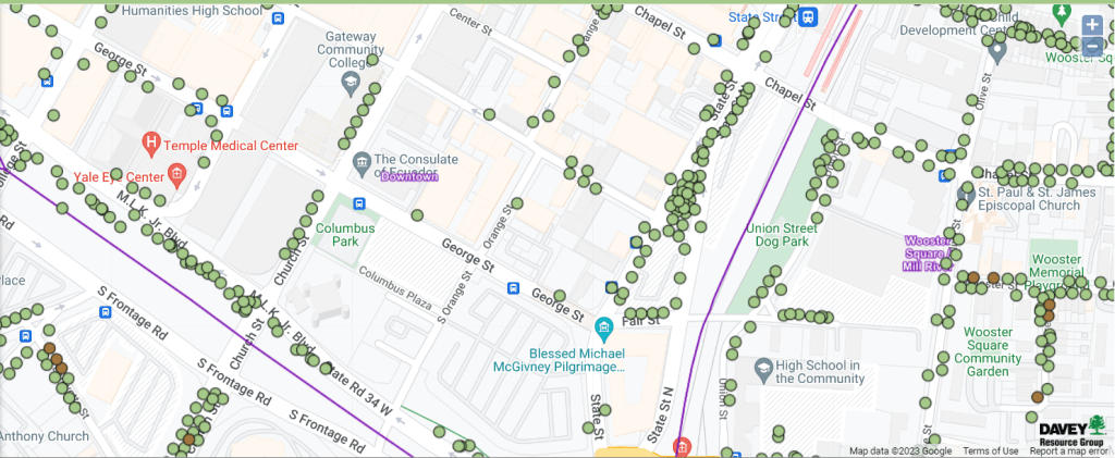 Several Connecticut towns have STI maps (Hartford and Wallingford), but New Haven’s (just click on a tree in this link to see its data) is the most relevant. Other cities have similar products, such as Queens NYC.