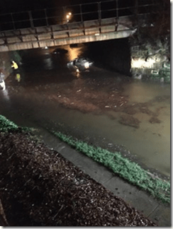 On 09/25/2018, the Creek experienced a deluge. Some say more than 6” fell in a couple hours, overwhelming the underpass drainage. Please see photographs taken by Dee Dee Hakun from her nearby home. One of our residents, Dr. Marv Zimmerman, lost his Subaru car in the flood waters, which rose precipitously and at age 90, he was in peril. There was another flooded car blocking egress/ingress for some time until both cars were pulled out by tow trucks. At the height of the flood, it rose to the car windows.
